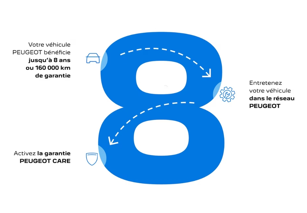 Chez Peugeot Saint-Loubès, nous avons à cœur de vous accompagner dans la durée. Avec le programme Peugeot Care, bénéficiez d’une extension de garantie constructeur pouvant aller jusqu’à 8 ans ou 160 000 km, en toute simplicité.